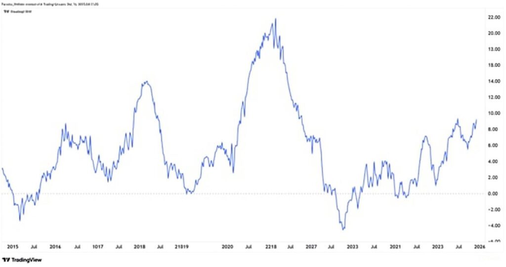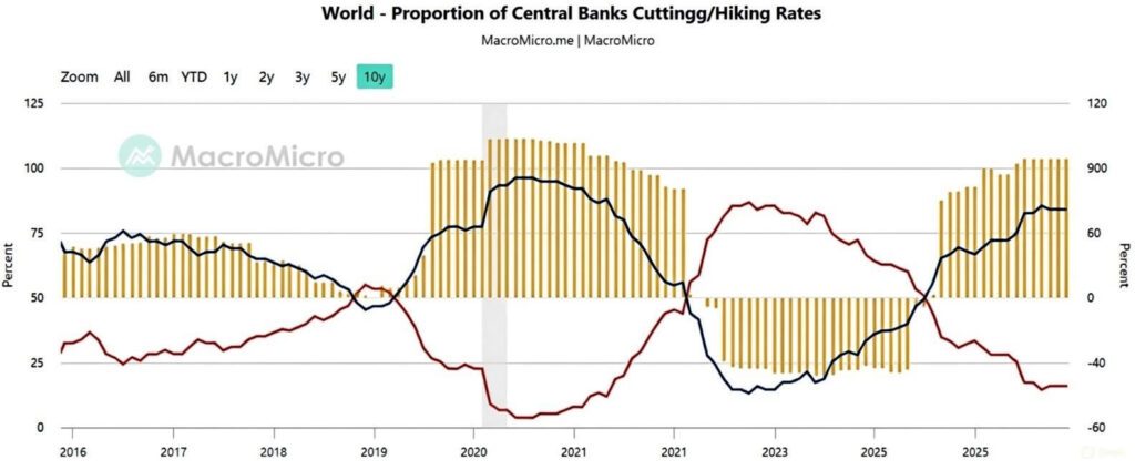 За останні місяці річні темпи зростання світової грошової маси помітно прискорилися та наблизилися до максимальних значень за кілька років, перевищивши рівень дев’яти відсотків. Така тенденція може створювати додаткову підтримку для Bitcoin у 2026 році, однак її вплив значною мірою залежатиме від подальших рішень центральних банків і загального стану світової економіки.