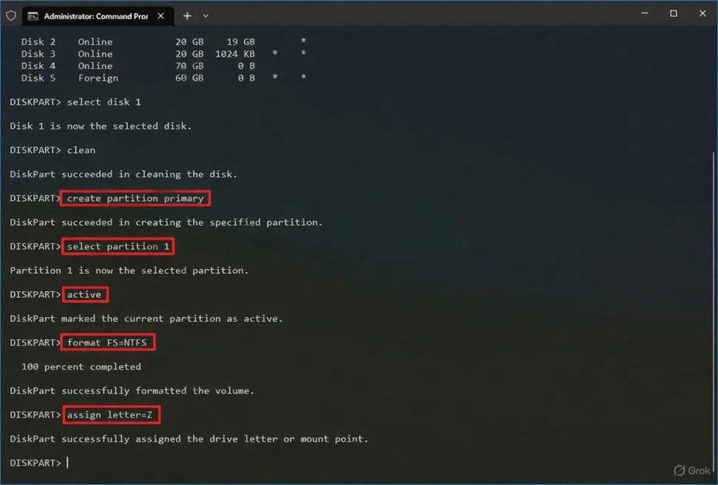 Введіть таку команду, щоб призначити літеру диска, і натисніть Enter:assign letter=Z