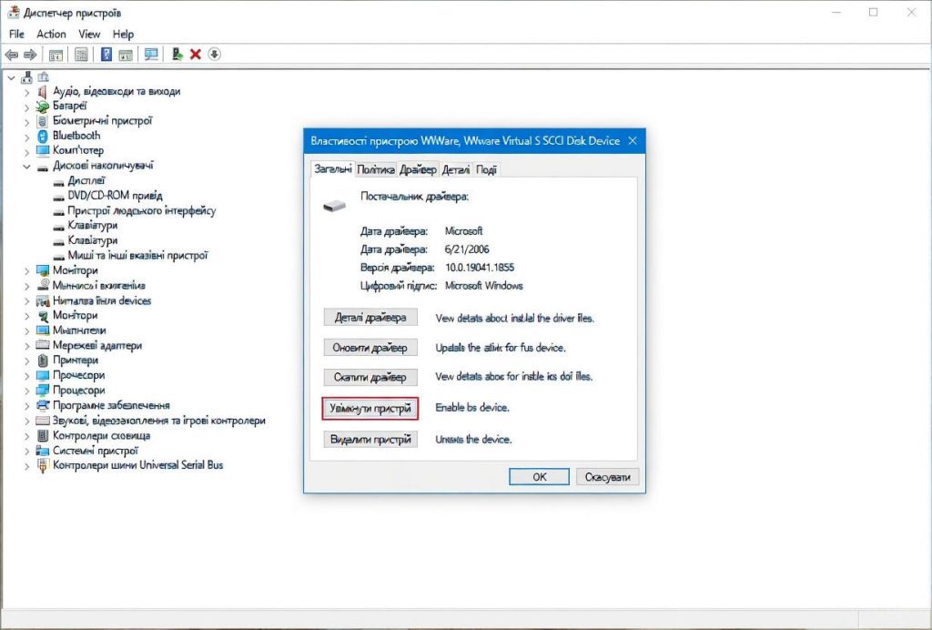 Щоб увімкнути жорсткий диск через Диспетчер пристроїв у Windows 10, виконайте наступні кроки: