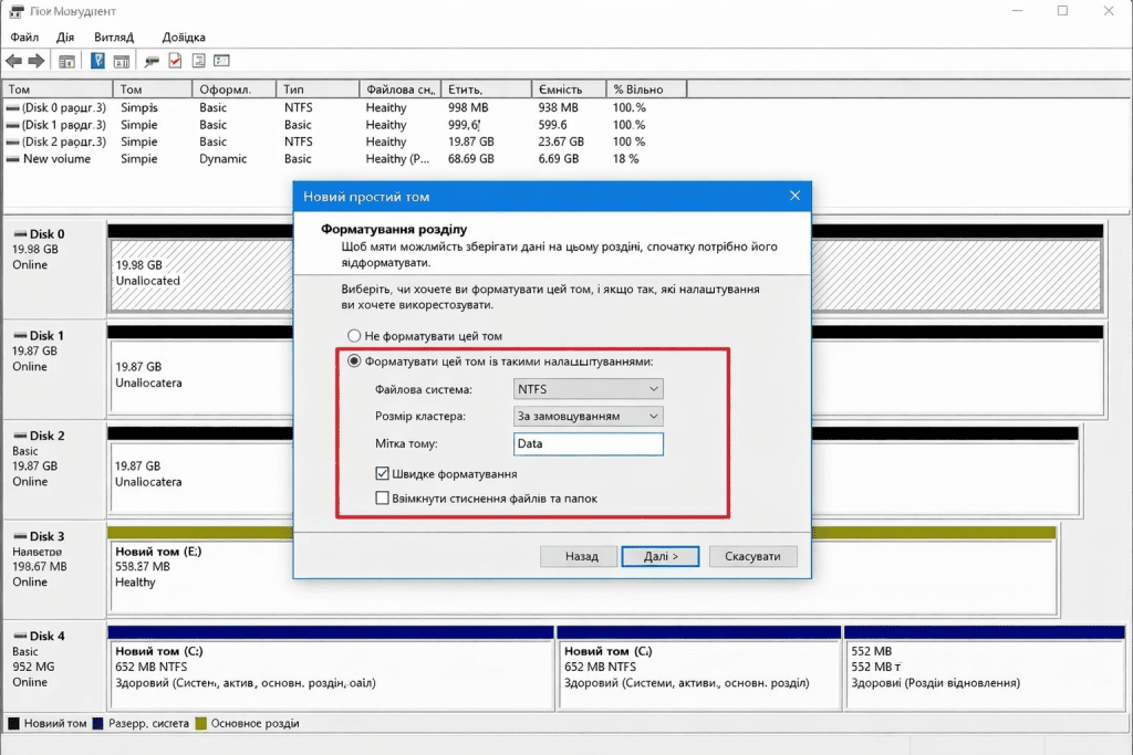 Налаштування нового розділу жорсткого диска