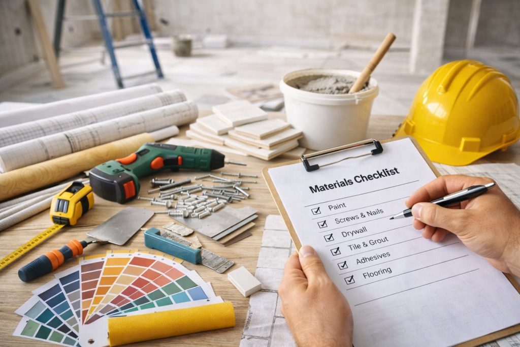 Після того як визначено обсяг і складність майбутнього ремонту, варто переходити до планування будівельних матеріалів та інструментів. Чітке розуміння фронту робіт дозволяє правильно розрахувати кількість необхідних матеріалів, уникнути зайвих витрат і значно скоротити час на підготовку.