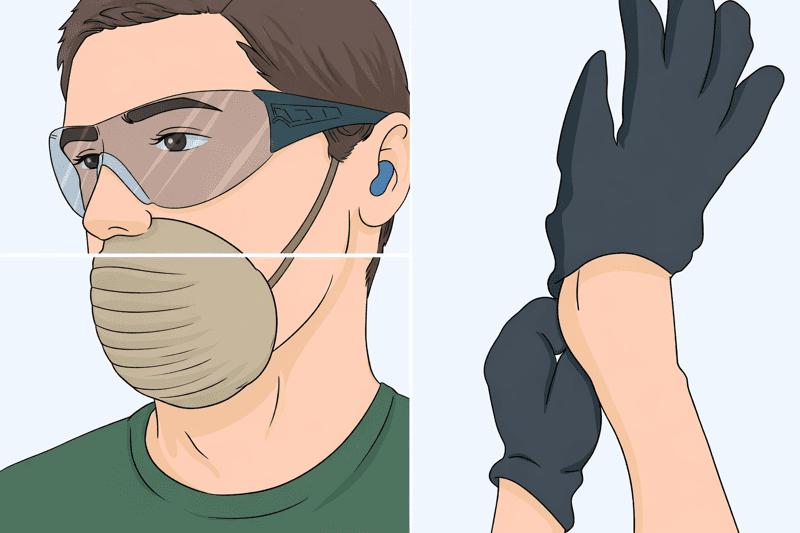 Перед початком робіт обов’язково одягніть захисні рукавички, окуляри та респіратор. Під час очищення й підготовки стін утворюється дрібний пил, який може подразнювати очі та дихальні шляхи. Щоб уникнути неприємних наслідків, не знімайте засоби захисту як під час підготовки поверхні, так і під час нанесення шпаклівки.