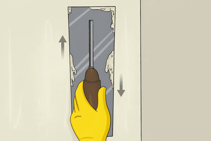 Під час очищення не знімайте захисну маску та окуляри, адже під час роботи піднімається багато пилу, який може потрапити в очі або дихальні шляхи. Для кращого результату після сухої чистки можна додатково протерти стіну злегка вологою ганчіркою й дати їй повністю висохнути перед наступним етапом.