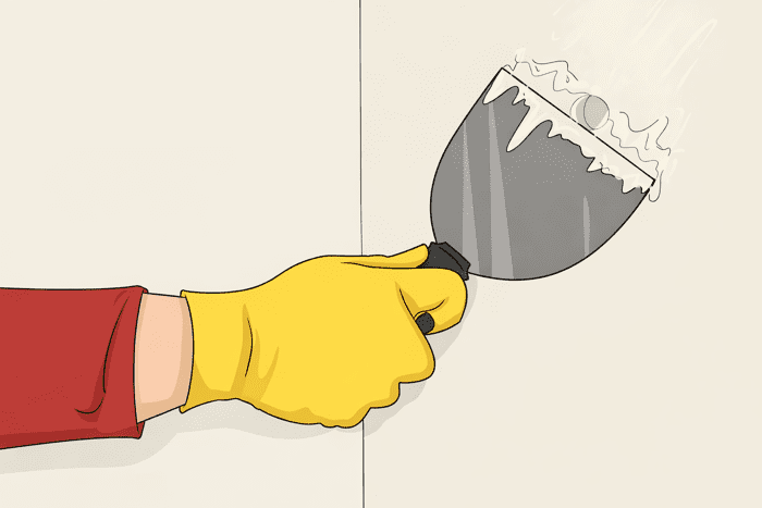 Якщо на стіні є дрібні тріщини або отвори до 1–1,5 см, акуратно вишкребіть пухкий матеріал лезом викрутки або шпателем. Глибші чи ширші пошкодження не рекомендується заповнювати звичайною шпаклівкою — для них краще використовувати ремонтні суміші або інші способи відновлення поверхні.