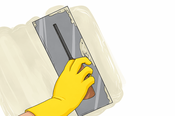 Після заповнення проведіть шпателем горизонтальними й вертикальними рухами, знімаючи надлишки матеріалу та вирівнюючи поверхню зі стіною. Це допоможе уникнути напливів і спростить подальше шліфування.