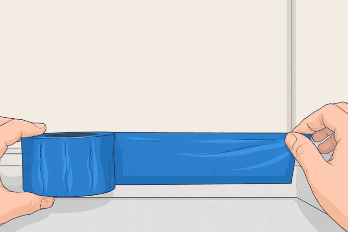 Перед початком робіт важливо заклеїти всі елементи, які не повинні контактувати зі шпаклівкою. Для цього використовуйте малярську стрічку, щоб акуратно замаскувати дверні та віконні лиштви, плінтуси, розетки й інші нерухомі деталі, які неможливо демонтувати.